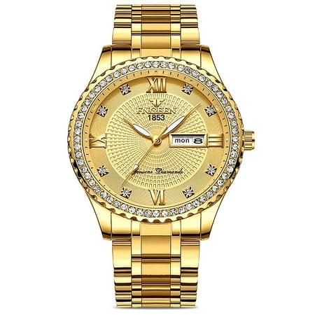 The SUWU Men's Quartz Watch combines luxury with precision, featuring a diamond dial and gold stainless steel strap for a touch of elegance. Equipped with a Japanese quartz movement and date display, it ensures accurate timekeeping. Water-resistant up to 3...