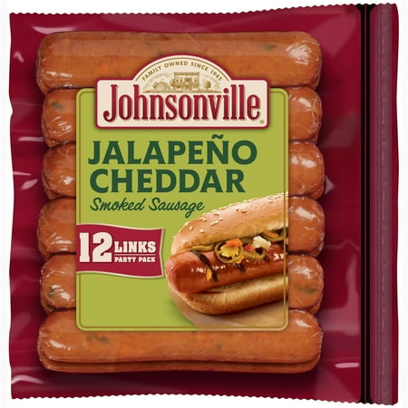 Add bold, spicy flavor to your next gathering with Johnsonville Jalapeño & Cheddar Smoked Sausages, made with 100% premium pork, real cheddar cheese, and jalapeños. Naturally smoked and fully cooked, this party pack is perfect for feeding a crowd at cook...