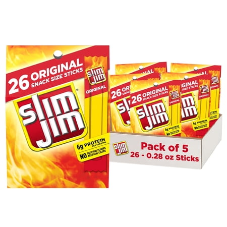 Experience intense, smoky flavor with delicious Slim Jim Original Snack Size Sticks. Made with beef, pork and chicken, these meat sticks contain no artificial flavors or colors for full meaty flavor everyone can love. Each meat stick serving is loaded with...