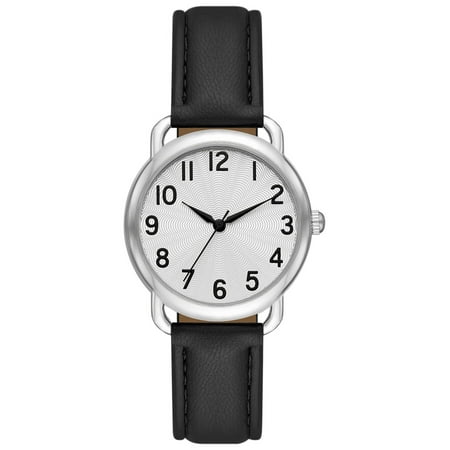 You will love the modern but classic look of this Time and Tru Silver Tone Textured Dial Watch, featuring a clean and minimalistic design with polished bezel, skinny lugs and clean silver-white dial. Black Arabic numerals and dauphine hands make it easy to...