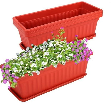 DIMENSIONS: Planter: length 15.6”, width 7” Tray: length 15.7”, width 6.3” The total height: 5.2”, including planter and tray PACKAGE INCLUDES: 3 x Flower Window Planter (Terracotta Color) FEATURES The planter box is made of premium plastic, whic...