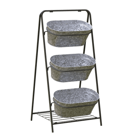 Panacea Products Modern Farmhouse 3-Tier Metal Garden Planter with wheels offers a stylish and functional solution for your gardening needs. This modern farmhouse planter features three galvanized metal troughs, each with a drain hole, making it an ideal r...