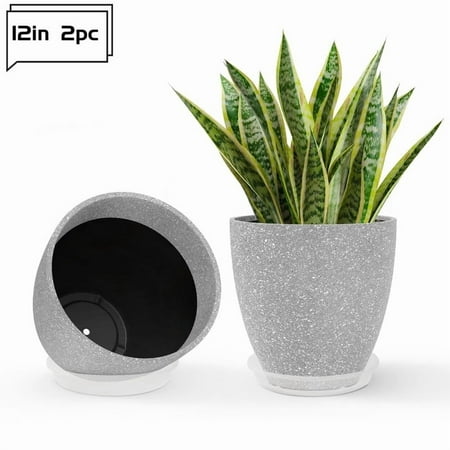 DUNCHATY 12 Inch Round Planter, Indoor Outdoor Large Plant Pot Flower Pots with Drainage Hole for Home Patio Garden 2 Pack - Gray FEATURES: *MODERN DESIGN Sleek and stylish, suitable for indoor and outdoor use, adding a decorative touch to any space. *HIGH...