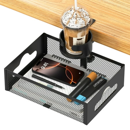 Is your desk a mess of paper, pens, documents, and random office supplies? Do you want your coffee within reach but not to occupy your desk space? Our large space under desk organizer with cup holder is your solution. Unlike other plastic alternatives, thi...