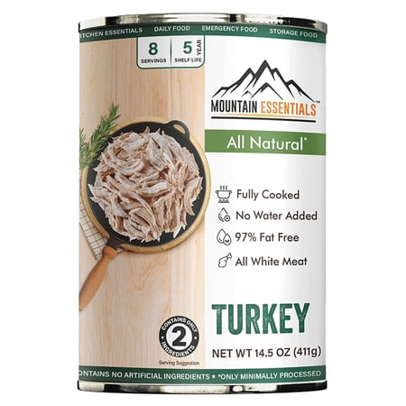 Mountain Essentials All Natural Canned Turkey delivers premium, fully cooked white deli turkey made with only turkey and sea salt. Ready to eat straight from the can with no refrigeration needed until opened, this clean, protein-rich meat is perfect for qu...