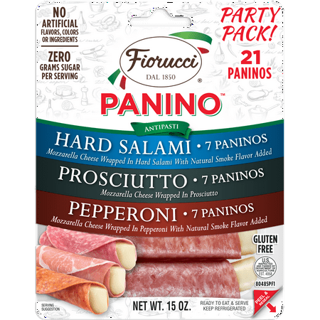 Create a delicious party tray instantly with our new Fiorucci Panino Party Pack, featuring three delicious meat and cheese combinations that are ready to serve and eat anytime. Each 15-oz. resealable package contains twenty-one Paninos total; seven hand-wr...
