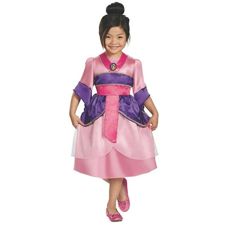 Unleash your inner warrior princess in this stunning Mulan Sparkle Classic costume featuring an adorable satin dress with gold glitter accents, multilayered skirt, and character cameo. Care Instructions: Hand wash cold water with mild soap. Tumble dry low....