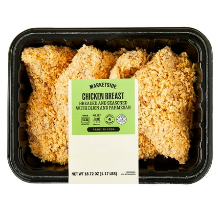 Marketside Chicken Breast Breaded and Seasoned with Dijon and Parmesan make for a delicious dinner that's ready to go in a flash. These ready to cook seasoned chicken breasts are easy to prepare in the oven for 15-20 minutes, or in the air fryer for 16-18 ...