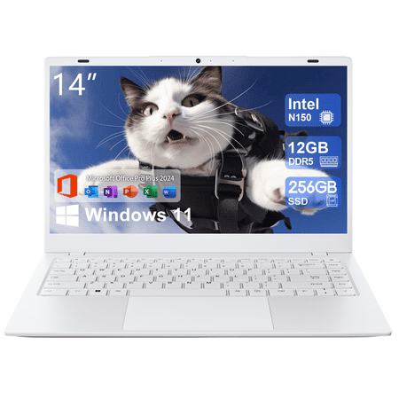 HYYUO Business Laptop, featuring an Intel N150 processor (up to 3.6GHz Turbo Boost), 12GB LPDDR5 RAM, and a 256GB SSD (Exp. up to 32GB+2TB) for lightning-fast responsiveness and reliable multitasking. Come with Type-C PD fast charging, it quickly powers up...