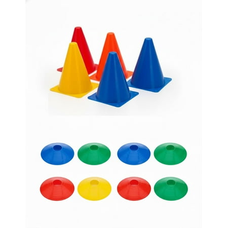 Complete Set – Includes 6 tall marker cones and 10 flat disc cones (multi-color). High Visibility Colors – Bright red, yellow, blue, white, and orange cones ensure clear visibility on grass, turf, courts, or gym floors. Durable & Flexible Plastic – B...