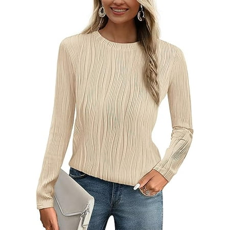 Fantaslook Womens Tops Textured Long Sleeve Shirts Casual Fall Tops Lightweight Pullover Long sleeve shirts for women is designed for the perfect blend of casual and chic. Womens tops crafted from lightweight, stretchy, soft fabric, this long sleeve blouse...