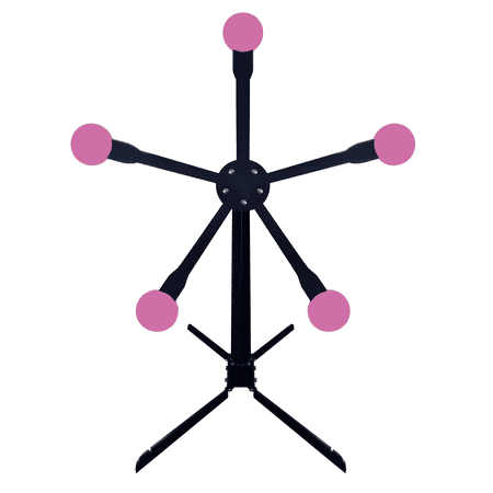 The 8-inch target plate is secured in place by a unique spring attachment system. Upon being hit, the target plate is released from the holder and drops to the ground. The change in weight distribution causes the hub and the 8-inch target plate to rotate. ...