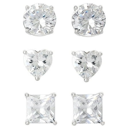 Elevate your jewelry collection with the Fine Silver-Plated Cubic Zirconia Earring Set, featuring three stunning shapes: heart, round, and square. Each earring is meticulously crafted with high-quality cubic zirconia stones, delivering a brilliant sparkle ...