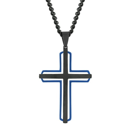 Give a meaningful gift with this stainless steel cross pendant featuring two-tone stacked crosses. Ideal for daily wear, it complements both casual and formal outfits. This cross necklace makes a perfect gift for fathers, sons, grandsons, husbands, boyfrie...