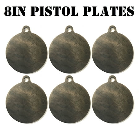 Set includes six 8in. round hanging metal targets with a 5/8" hole for mounting. Great for .22LR, 40cal, 9mm, .45acp, and most other pistol calibers. Manufactured to meet NRA Action Pistol specifications from new high quality 3/8in. thick A36 (mild) steel ...