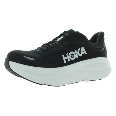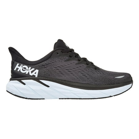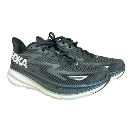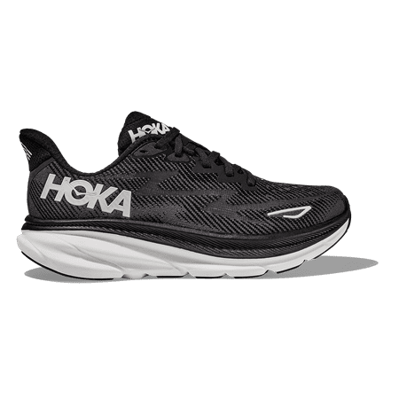 The HOKA Clifton 9 Athletic Outdoor Lace-Up Shoes for Men in Black White feature a medium width, lace closure and mesh material. These shoes are perfect for outdoor activities and occasions.