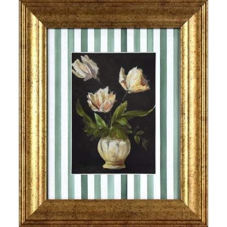 The Home Decor Collection Moody Tulips with Watercolor Stripes Pine Green Vintage Antique Frame 10x12 Wall Art Decor blends sophistication and warmth, making it a versatile addition to any interior space. This framed floral still life captures the quiet be...