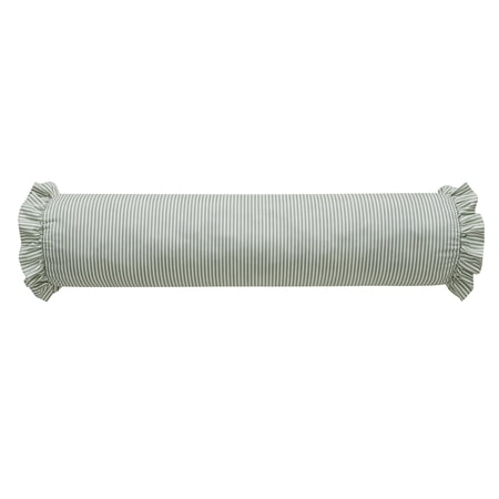 Add a timeless touch to your bed, couch, or favorite chair with the 8" x 20" Green Striped Ruffle Bolster Decorative Pillow. Featuring classic green and ivory stripes and a romantic ruffle trim at each end, this charming bolster pillow brings a cozy yet re...
