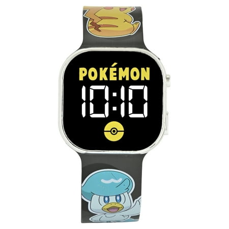Pokemon Unisex Childrens LED Watch With Square Caseand Printed Silicone Strap; POK4493WM