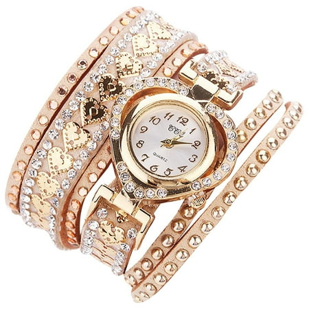 Beige Diamond Studded Bracelet Watch For Women Looped Alloy Jewelry Watch With Crystals Gift For Wife Girlfriend Sister Friends Elegant Fashion Accessory For Daily Wear