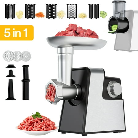 5 IN 1 meat grinder, sausage stuffer, kubbe maker, vegetable slicer/shredder and tomato strainer. With abundant accessories, it easily meets your family's different daily cooking needs of preparing the seasoning meat sauce, hamburgers, sausages, salad, jui...