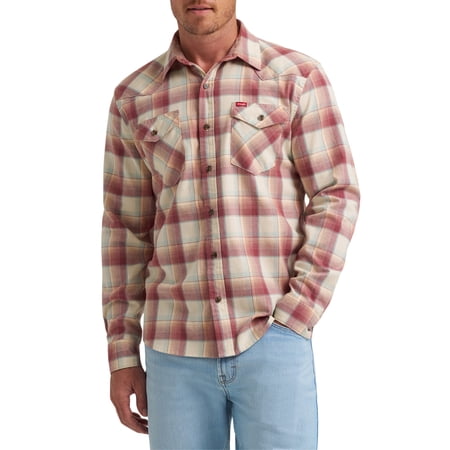 Great with jeans or khakis, the Wrangler® Men's & Big Men's Long Sleeve Woven Shirt is a wardrobe must. Easy to wear and comfortable, this breathable button-down features a relaxed fit, side vents, built-in sunglasses cleaner, two pleated front pockets, b...