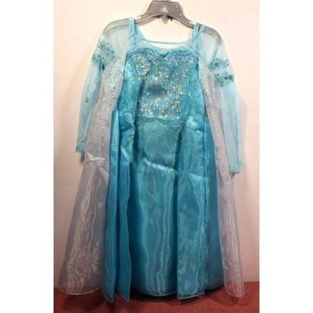 Your princess will go from Frozen to fabulous in a hot second in this Elsa Halloween costume! Elsa's elegant party dress is ice blue with sheer sleeves, a snowy white attached collar and an overlay of magically sparkling snowflakes. This gorgeous Frozen co...